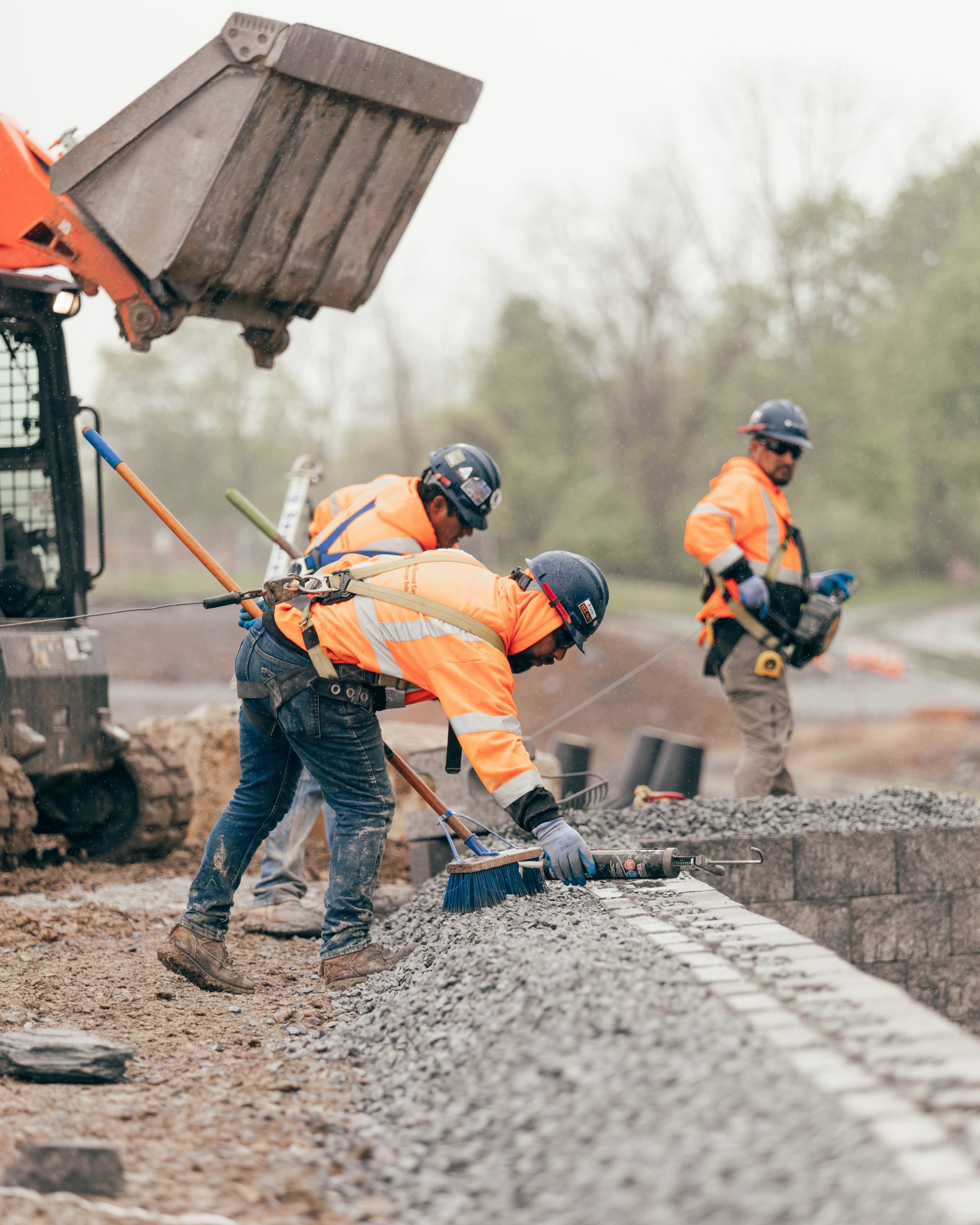 - The vertical lines of the W represent the pattern of segmented paving.