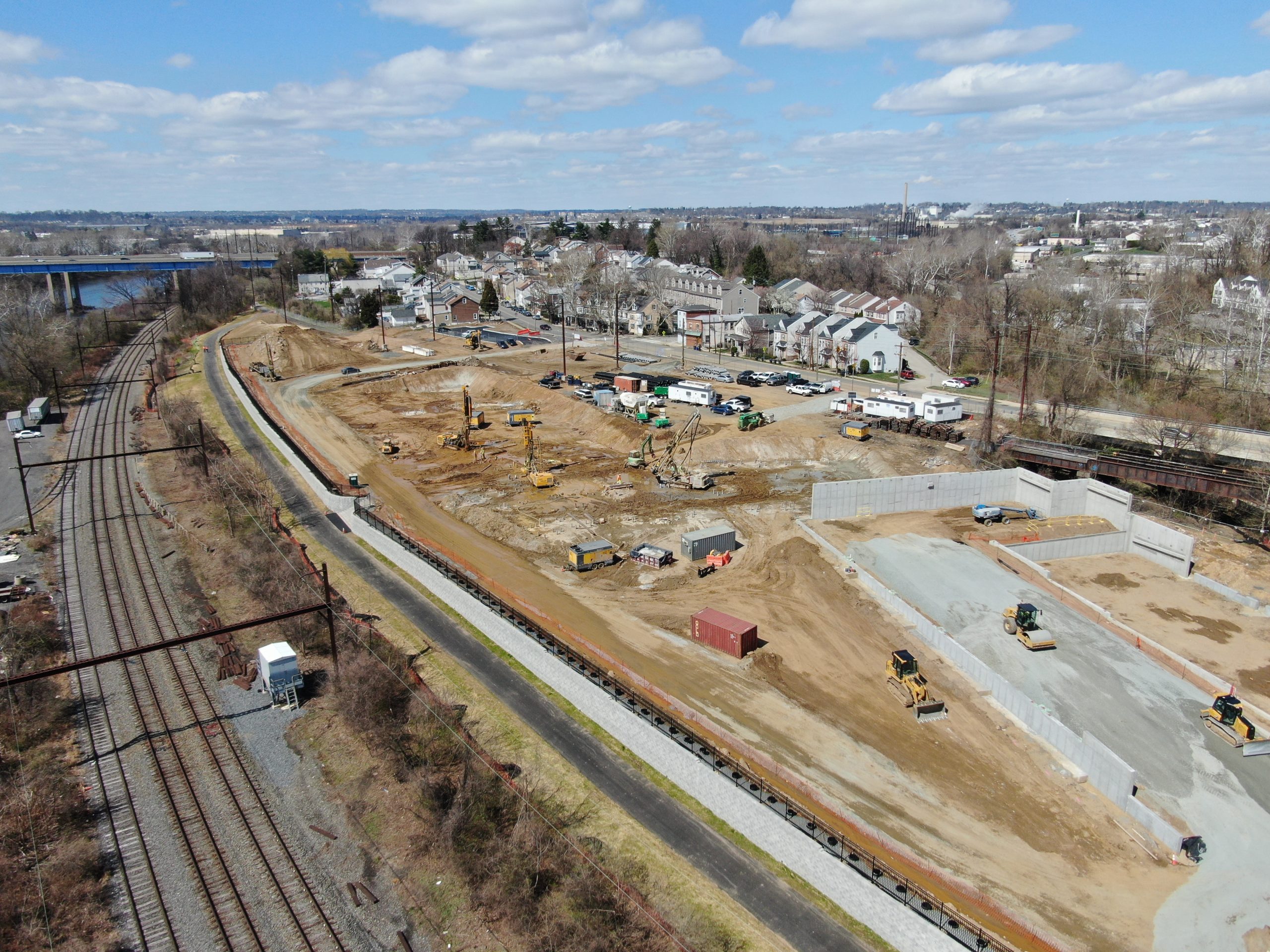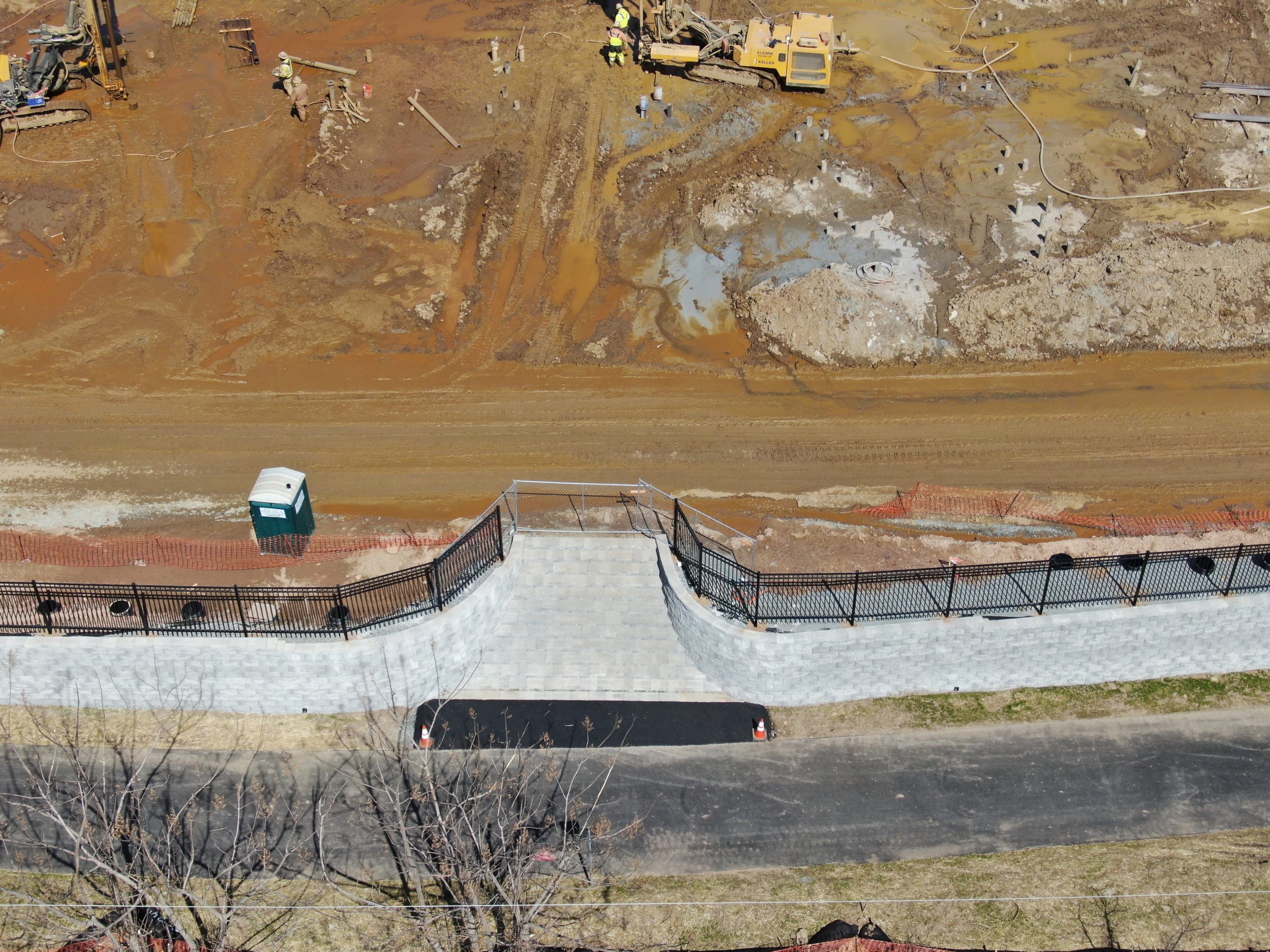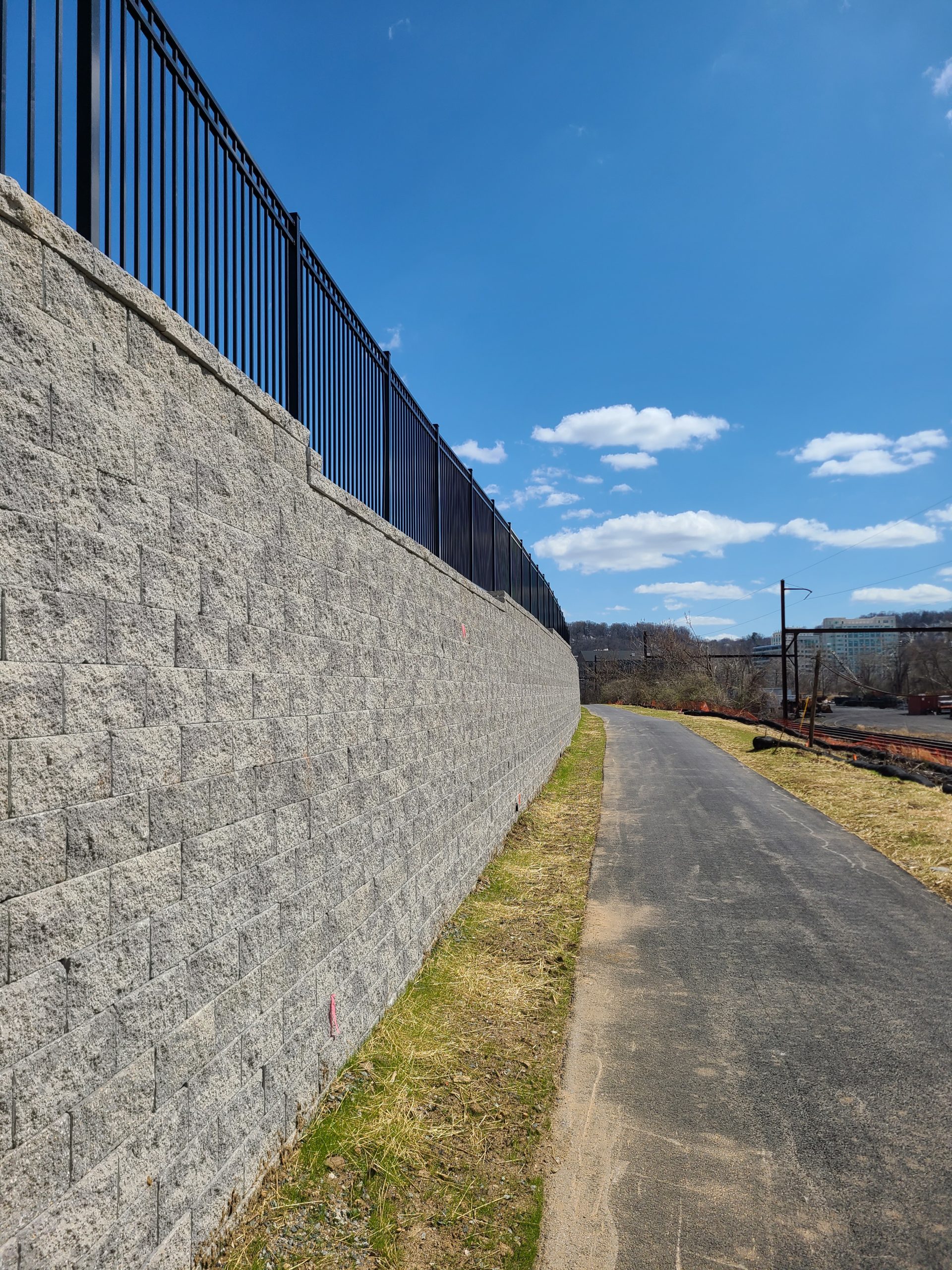 400 West Elm is a new 445,000+ sq. ft., 348-unit apartment complex coming to the Conshohocken community. The ultra-luxury residential apartments will be some of the first of its kind in the area. This 11,687 sq ft retaining wall borders the property and the Schuylkill river trail with two egress to the path.
