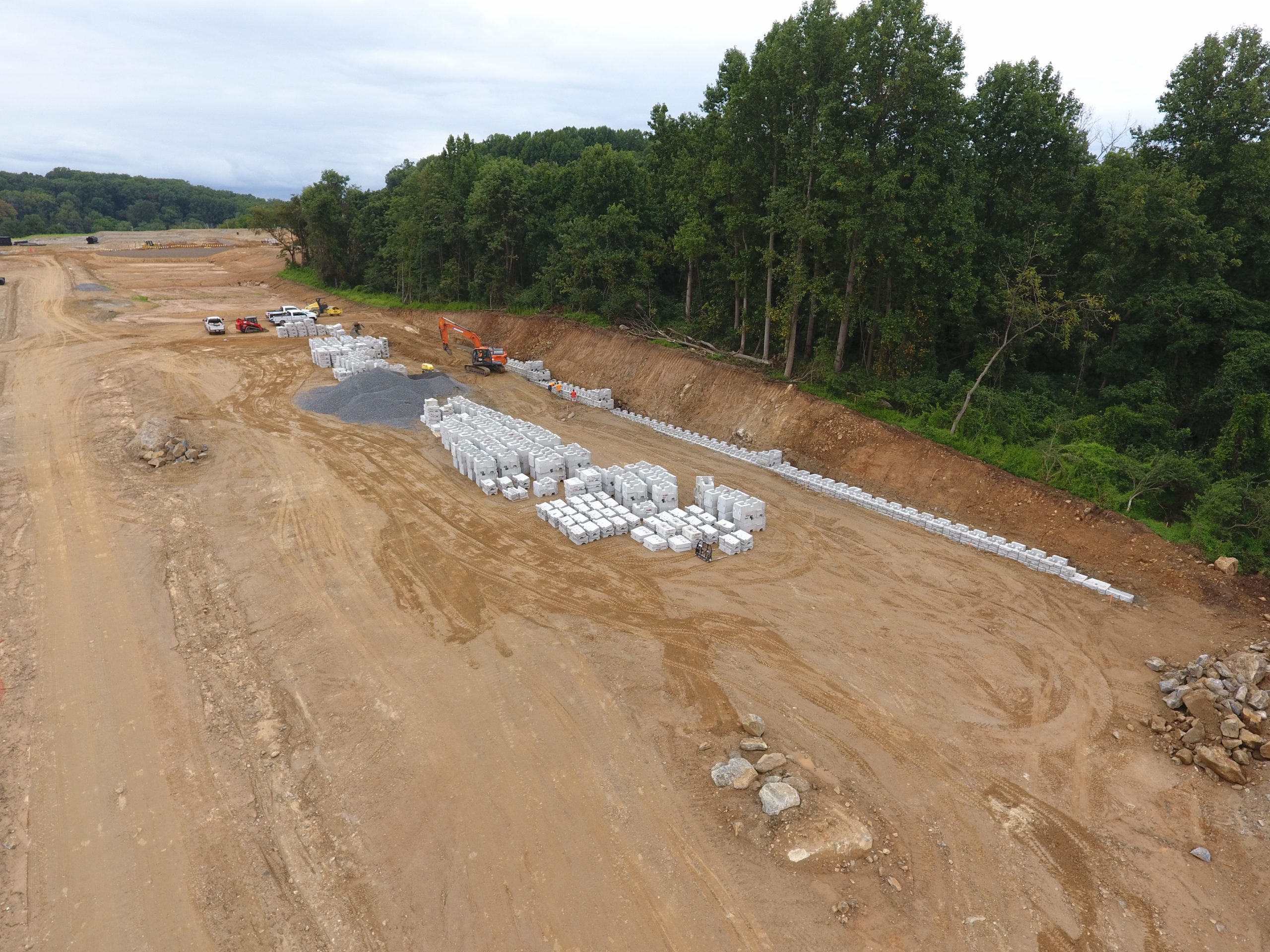 Located on the grounds of the previous Edgemont Country Club, Ventry at Edgemont Preserve is a community of 71 new single family detached new homes from Keystone Custom Homes. The retaining walls on the project flank the roadway creating access to this community. With over 35,000 sq ft of wall including one of the regions first Redi-Rock XL installations with 96” deep base block.