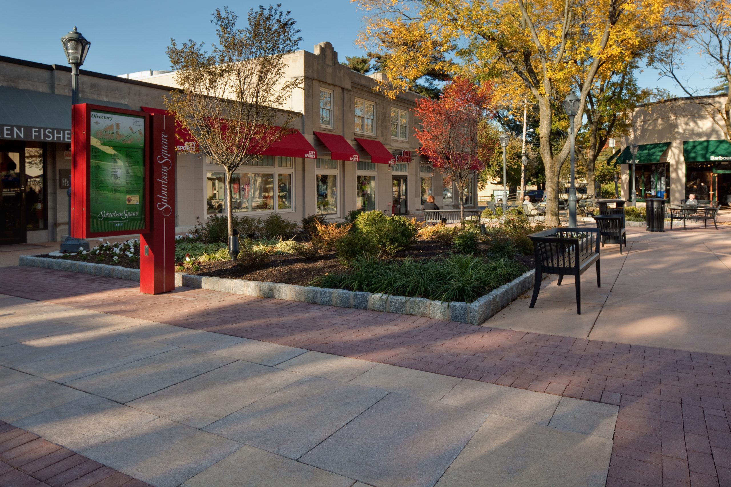 Suburban Square is a shopping center located in Ardmore, Pennsylvania. The center opened in 1928, and is notable as being one of the earliest shopping centers in the United States. Suburban Square has been the shopping, dining and social heart of the Main Line. In 2012, this upscale shopping center went through a complete hardscape and landscape renovation. Our scope of work included more than 30,000 sf of unit pavers, including a traffic circle.